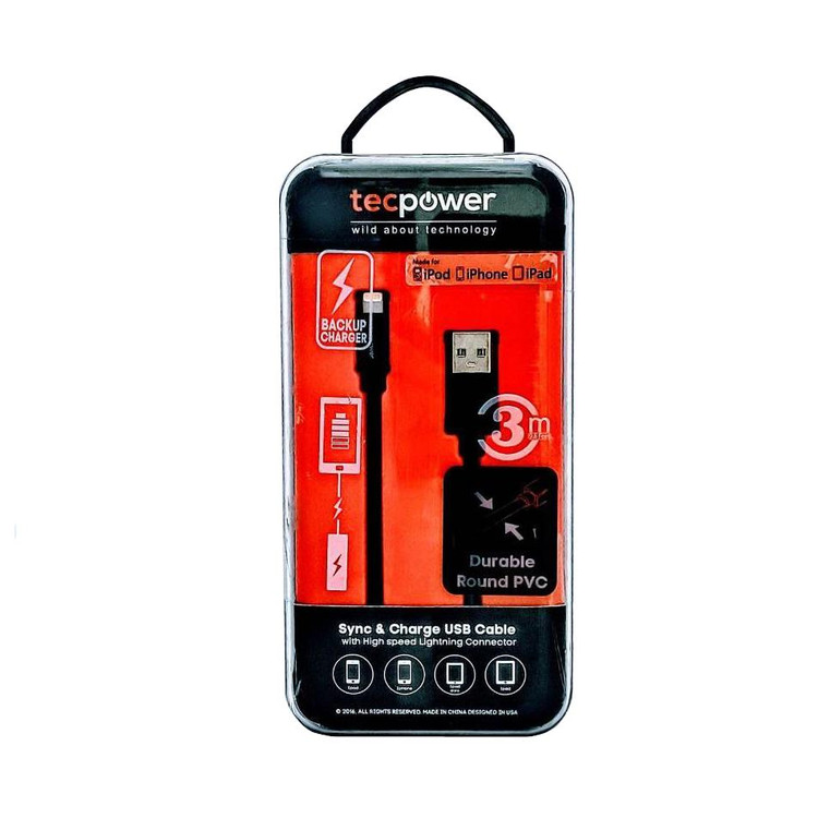 کابل شارژ تبدیل USB 2.0 به لایتنینگ تک پاور طول 3 متر مخصوص اپل